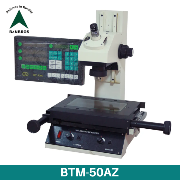 Our TM-50 Tool Makers Microscope designed as per international standards and offers wide range of application which include dimensional, angle and contour measurements of miniature parts as well as inspection of mechanical surfaces, Erect Image, Observation Tube - Monocular inclined at 300.It is an ideal measuring instrument for simplifying inspection and precision measurement of diameter, forming tools, gauges as well as temples checking of thread and angles.